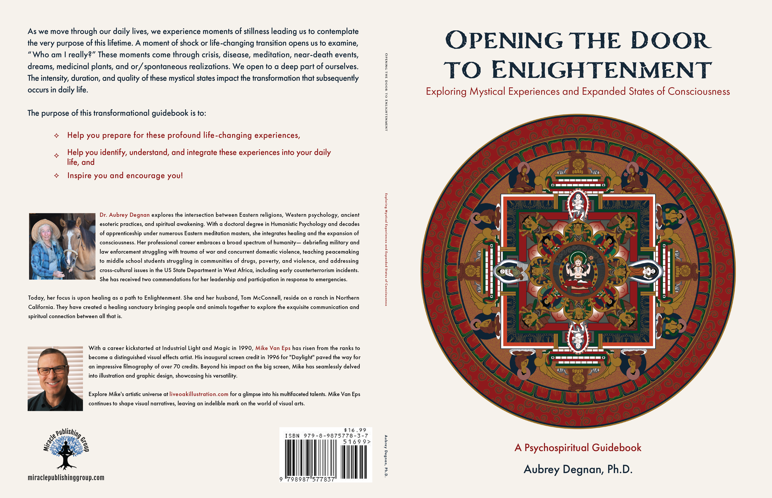 I collaborated with Aubrey Degnan on "Opening the Door to Enlightenment," and my favorite part of the project was crafting the front cover. It featured a meaningful Mandala of Compassion, cherished by the author and originally part of a tapestry adorning her home. I meticulously recreated this image digitally, and it became the centerpiece of our book cover. You can find a copy on Amazon. Opening the Door to Enlightenment