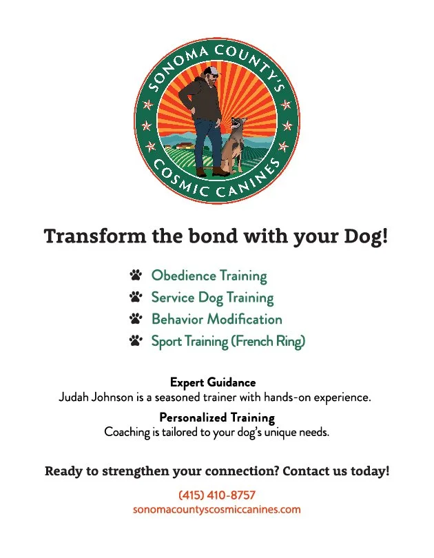 I had the pleasure of creating this logo and web ad for Judah as Sonoma County Cosmic Canines. Check them out!